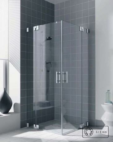 Rohový vstup bez stabilizátora, stabilizátor možné doobjednať. Bočná stena s Filia-stabilizátorom (vnútornou vzperou).