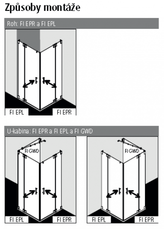 Cena kompletného sprchového kútu je súčtom ceny pravého polovičného dielu FI EPR a ľavého polovičného dielu FI EPL.