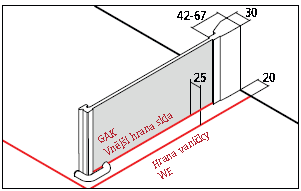 Nastaviteľná šírka v stenovom profile 25 mm.