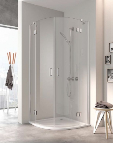 - Čiastočne rámový štvrťkruhový sprchový kút, dvere otváravé iba von.