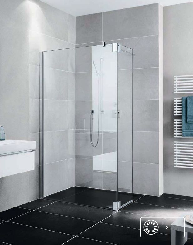 - Čiastočne rámová WALK-IN bočná stena s pohyblivým krídlom otočným o 90o dovnútra aj von